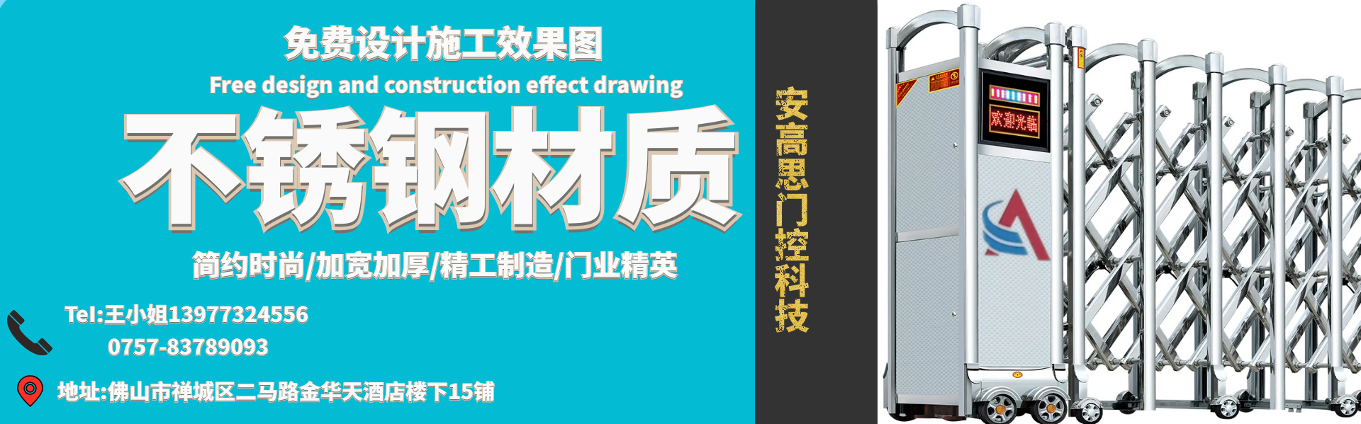 佛山市安高思門控科技有限公司自2017成立至今已有3多年歷史,公司文化底蘊深厚。安高思門控科技是一家專業從事伸縮門、工業門、門控機電領域產品的研發,生產銷售和服務為一體的高新技術企業。公司技術力量雄厚,聚集一批資深專業料研人員,從事非接觸技術產品的開發與技術支持,專業提供方案優化設計, 項目規圳及實施,產品施工技術等一條龍服務。在信息科技高速發展的今天.安高思門控科技全體同仁本著,一切為客戶服務的崇高理念,不斷耕耘,再接再厲,繼往開來,一如既往以誠信廣交天下朋友,攜手共進.共創美好明天......